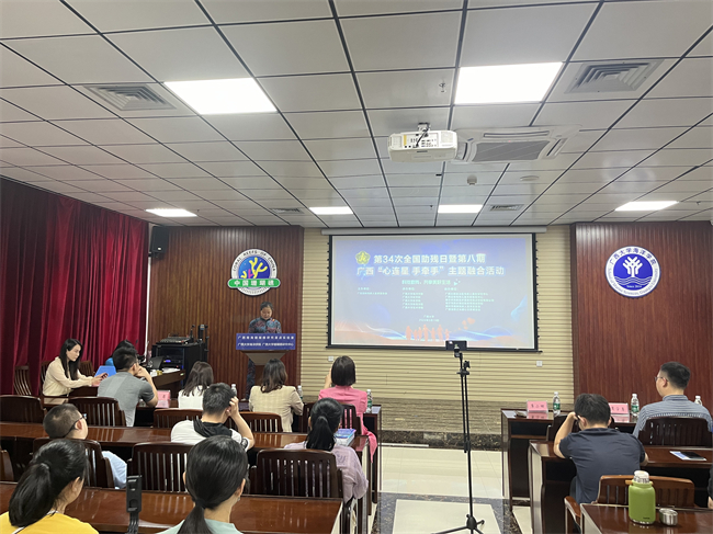 2024年5月19日,由广西残联精神残疾人及亲友协会主办,广西大学海洋学院、林学院、农学院、体育学院、艺术学院承办,广西残疾人康复研究中心、广西幼专特殊儿童关爱服务中心等单位协办的第三十四次全国助残日暨第八期广西“心连星 手牵手”主题融合活动在南宁举行。广西残联副主席覃小田出席活动并讲话。广西残联理事、智力残疾人及亲友协会主席班彩霞,广西残联理事、精神残疾人及亲友协会主席、广西大学海洋学院团委书记黄学勇,广西大学林学院团委书记李琼莹出席活动。各承办及协办单位代表、孤独症儿童及家长代表、志愿者等共150多人参加活动。