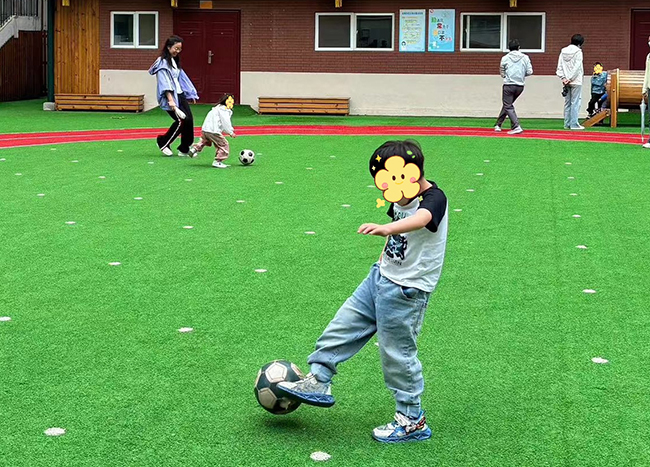 图为脑瘫儿童在操场上踢足球