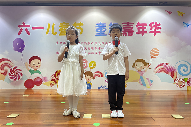 5月31日,天津市天宾服务中心的领导和职工来到康复中心,与中心共同开展“童趣嘉年华”儿童节演出活动。一场别开生面的环保秀拉开帷幕,听障小朋友们利用废旧物品亲手制作出了美丽的时装,环保秀促使孩子们提高环保意识,倡导孩子们一起为保护地球贡献力量。孩子们用舞蹈《中国范儿》诠释着对祖国的热爱,儿歌串烧、三句半、朗诵等节目个个精彩,活动中小朋友们热情满满、活力四射,充分展示了良好的康复效果和创造能力。现场所有家长、老师、志愿者和爱心人士一起用心聆听他们的声音,观看他们的表演,分享他们的快乐和梦想。
