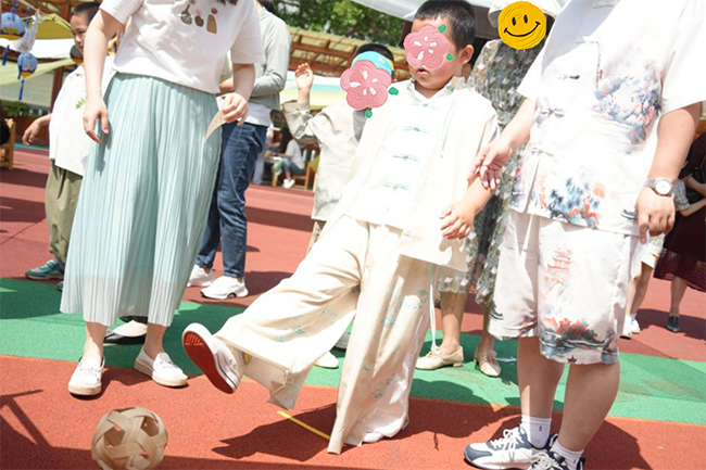 图为特殊儿童体验蹴鞠