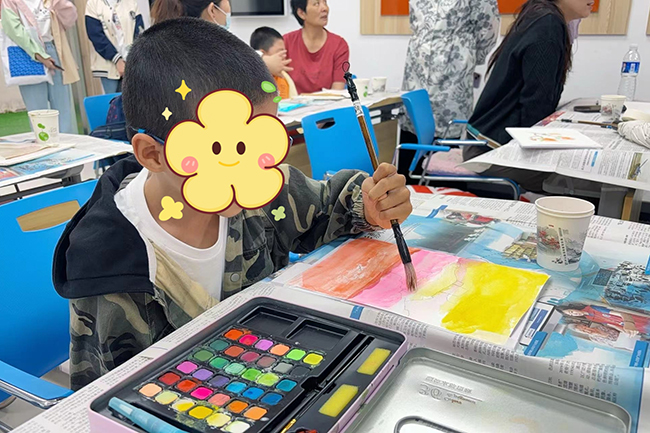 活动,参观特教学校的环境和设施,体验无障碍环境。同时,还进行了现场水彩画教学,孩子们用各种颜色的小水彩涂抹出属于他们自己五颜六色的童年。